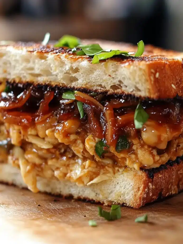 Gochujang Chickpea Salad Sandwich with Caramelized Onions is a delightful twist on a classic sandwich. This dish combines the rich, umami flavors of gochujang with creamy chickpeas and sweet caramelized